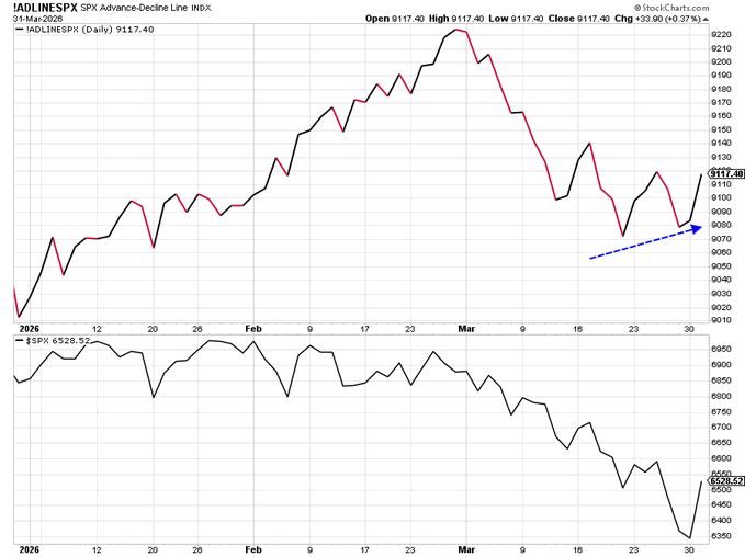 - Ryan Detrick, CMT@RyanDetrick – Breadth didn’t break to new lows with price. Here’s the S&P 500 A/D line sporting a positive divergence with price.